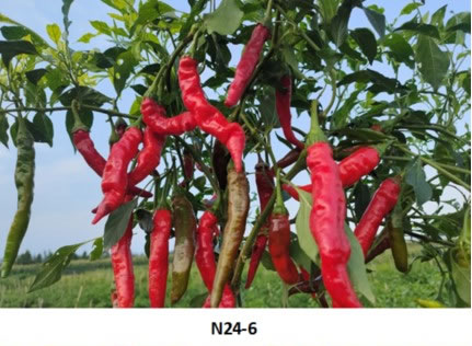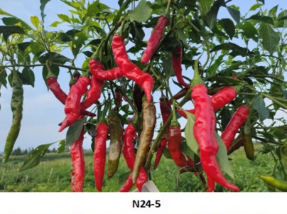 果實(shí)小牛角、果皮稍皺,產(chǎn)量高,抗病性強(qiáng),味香辣,皮薄,肉質(zhì)脆嫩,適合五峰種植 |